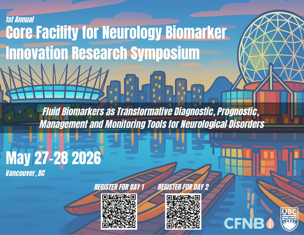 We are delighted to share that the Core Facility for Neurology Biomarker Innovation (CFNBI) will be hosting its 1st Annual Interdisciplinary Conference, “Fluid Biomarkers as Transformative Diagnosis, Prognosis, Management, and Monitoring Tools for Neurological Disorders,” at the Djavad Mowafaghian Centre for Brain Health and Vancouver General Hospital in Vancouver, BC, from May 27–28, 2026.